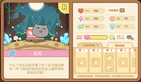 猫咪升星需要收集相同的猫咪卡片,升星后会小幅增加某几项属性数值,获取这些猫咪卡片的主要途径是嘉宾邀请哦~