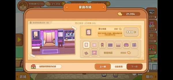 开荒阶段建议优先提升旅馆等级(家具市场),这能显著提高小费收益。前期农场资源有限,提升小费价格可以让发展速度最大化——毕竟每天都有稳定的小费收入,升级得越早,损失的潜在收益就越少。相比之下,食材升级需要消耗大量小鱼干,而且单个食材的提升对整体收入的影响很小,得等到中期农场全面解锁后,再集中资源对所有食材进行大规模升级才更合适。