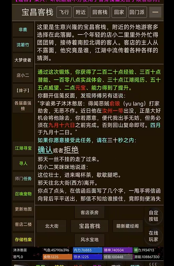 2.推进章节:完成特定任务,如新生大比、与师兄交谈、住客栈,解锁第四章。