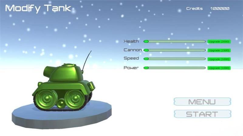 在《金属战争》(WARS OF METAL)的主界面点击“开始”(START)按钮,即可进入战斗场景,接下来你需要操控绿色坦克展开对战。