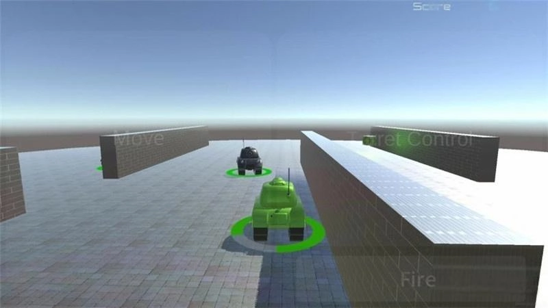 战斗时,驾驶坦克顺着通道前进,瞄准绿色方块的目标,操控炮台进行射击,要留意避开障碍物和敌方单位。