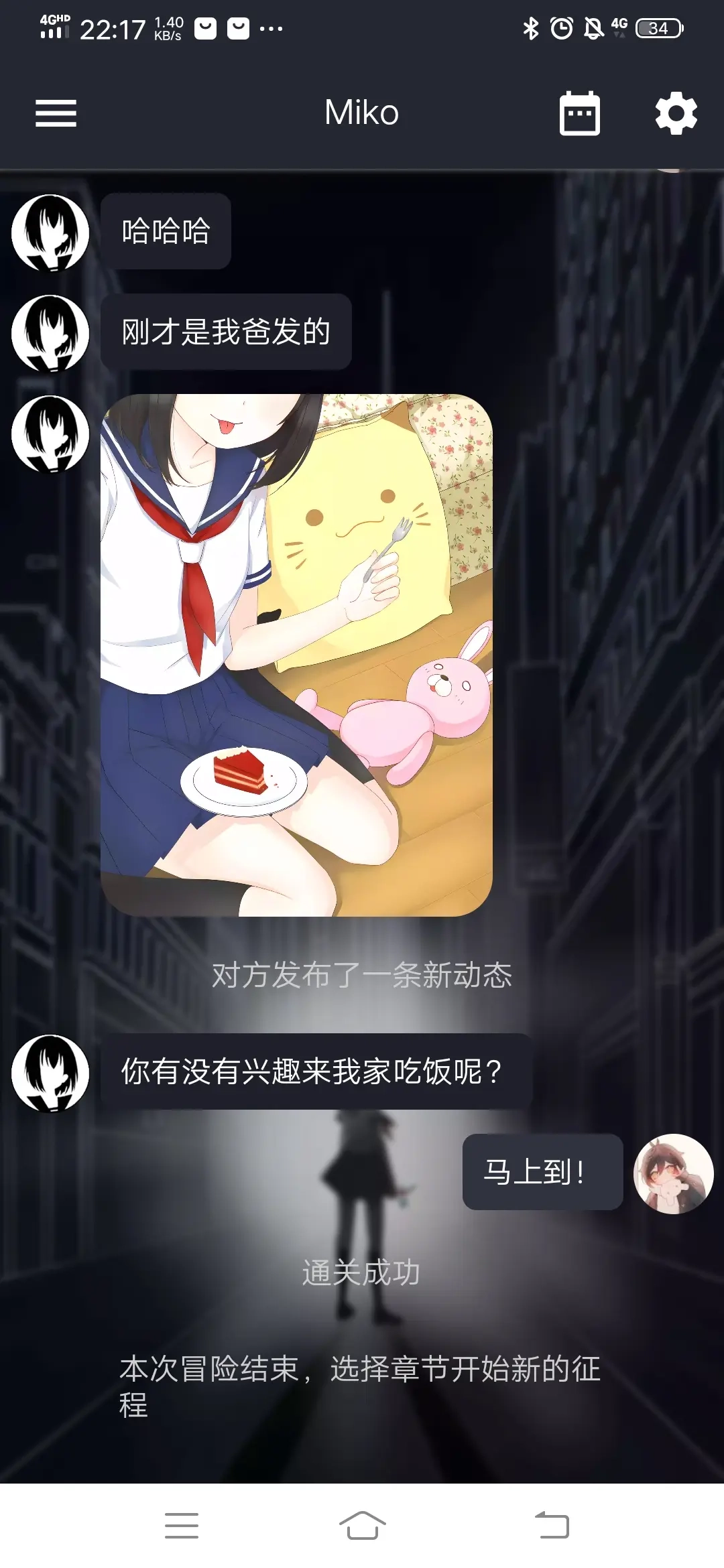 2、丰富的游戏剧情章节,玩家作为网友只能通过聊天信息来帮助Miko