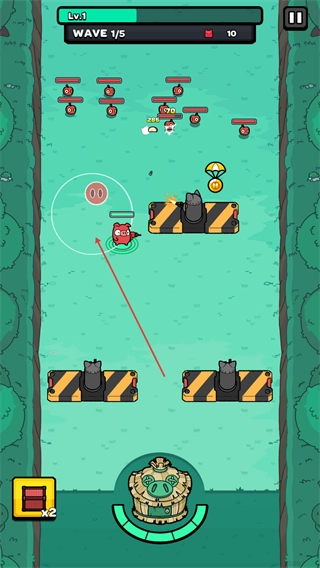 2、操控炮台对WAVE1/5的怪物发起攻击,收集它们掉落的道具,以此削减怪物的数量。