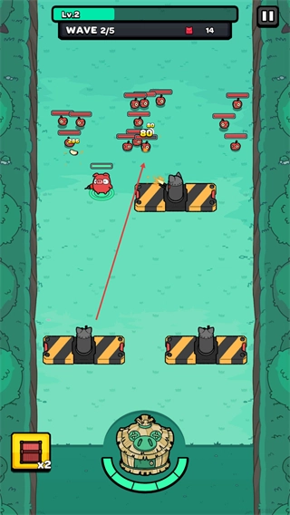 4、利用强化后的炮台对WAVE2/5的怪物发起攻击,以此不断推进关卡的进度。