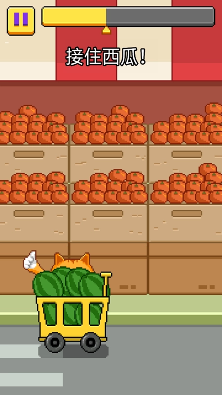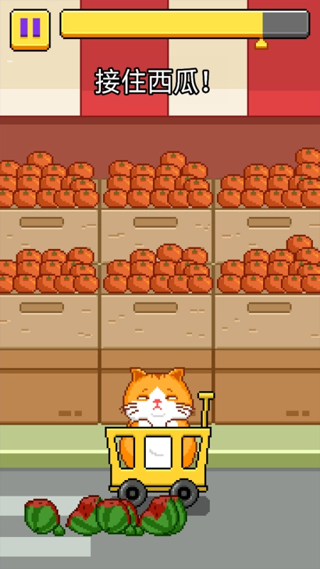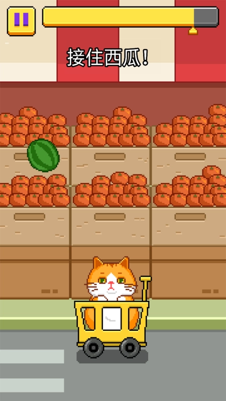 这款游戏趣味十足,连猫咪都能玩的西瓜游戏,用购物车接住货架上掉落的西瓜,快来试试吧!