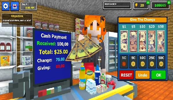 2、通过写实的超市场景构建与细致的操作细节呈现,强化玩家的代入感,使其能够身临其境地体验收银员与经理的双重身份。