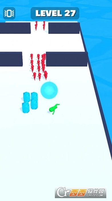 关卡场景里的敌人会尝试攻击玩家,所以在还没凝聚出一个足够大的冰球时,你得在地图上奔跑着躲避敌人的攻击。