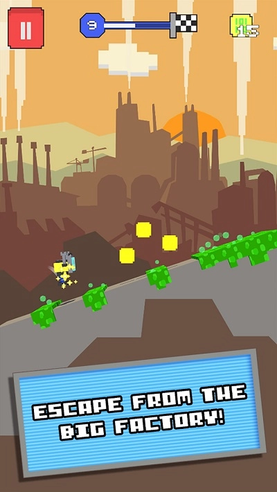 在跑酷过程中,你需要操控Jumbot进行跳跃,避开各种障碍,收集黄色硬币,朝着终点方向前进,与此同时还要留意场景中出现的道具。