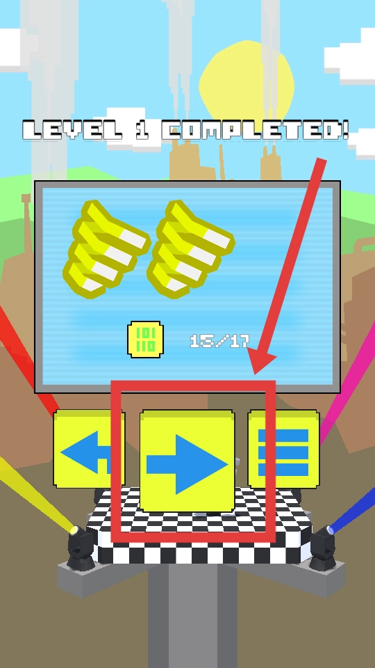 成功通过关卡1后,界面会显示关卡1已完成,此时点击带有蓝色箭头标识的按钮,就能进入下一个关卡继续进行挑战。