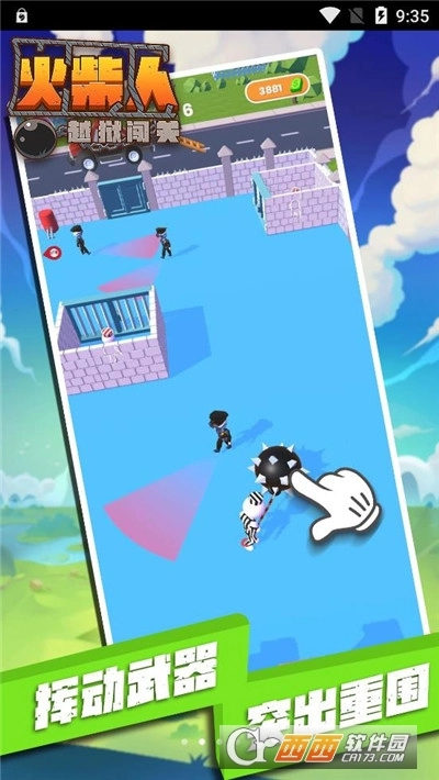 挥舞武器,撞破墙壁,解救狱友,逃离监狱,不过得小心避开巡逻的安保人员哟;