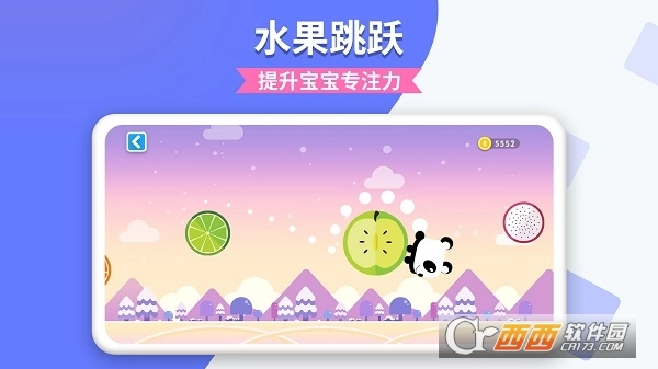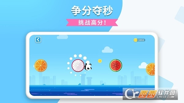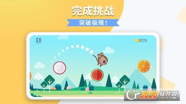 跳跃水果是一款面向幼儿的休闲闯关类游戏应用,玩法是让幼儿操控角色跳到更远的水果上,过程中需要他们精准把握时机,以此锻炼手速并提升专注力。