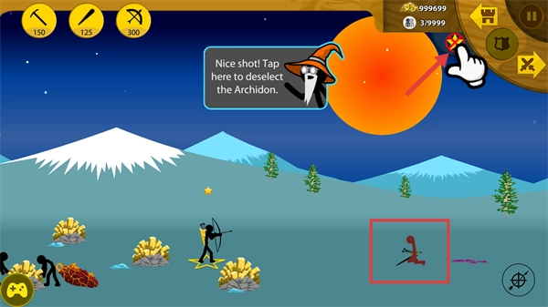 4、当收到【Nice-shot-Tap-here-to-deselect-the-Archidon.】的提示时,点击对应的区域以取消对弓箭手的选中。