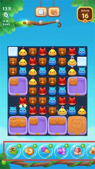 3、剩余步数减少时,合理使用底部【刷新】【交换】等道具,调整布局以获取更多可消除组合,推进目标完成进度。