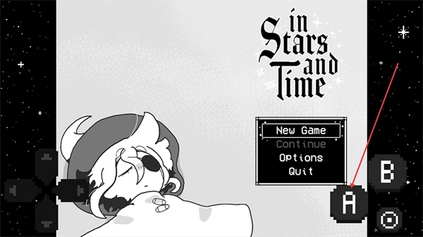 进入时光与繁星交织的启动界面后,你可以按A键选择“NewGame”开启新局,也能选择“Continue”继续之前的存档,或是通过“Options”进行设置调整后再进行后续操作。