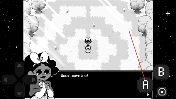 2、当你在当前场景里看到角色的Goodmorning对话时,只需点击界面上的A键,就能推动这段对话往下进行,进而继续后面的互动环节。