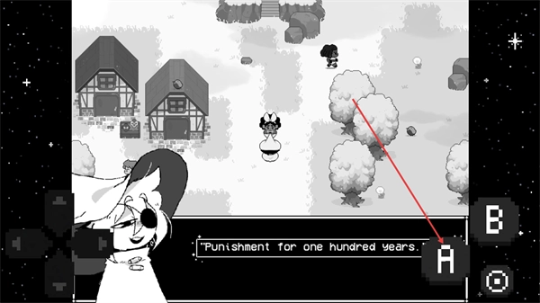 4、当界面中出现“Punishmentforonehundredyears”这段对话时,点击A键来选择角色对话选项,这样就能解锁接下来的剧情和场景了。