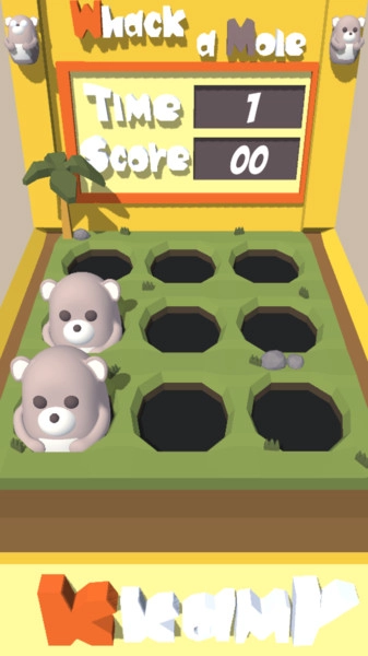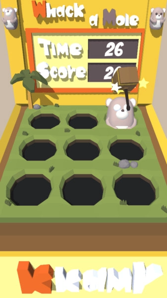 你得按时把所有地鼠都打退,每打一次地鼠都能让分数有所提升。