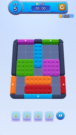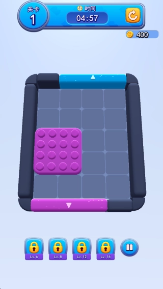 1、开局不要急于移动。首先观察整个棋盘布局:所有颜色出口的位置、可移动方块的分布以及障碍物情况。 2、高级技巧在于“制造连锁”。通过一次移动,不仅让当前方块抵达出口,还能让上方的方块掉落并自动形成新的“方块-出口”连接。 3、面对被锁链或冰块封锁的方块,需要有策略地优先处理。例如,先移动其相邻方块进行解冻。