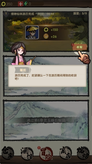 让角色出去游历,不用手动操作也能自动得到经验、金币这类丰厚奖励。奖励多少和游历的时间长短以及探索的进展情况相关,就算不在线也能提升等级、增强实力,真正实现“躺着也能成高手”!