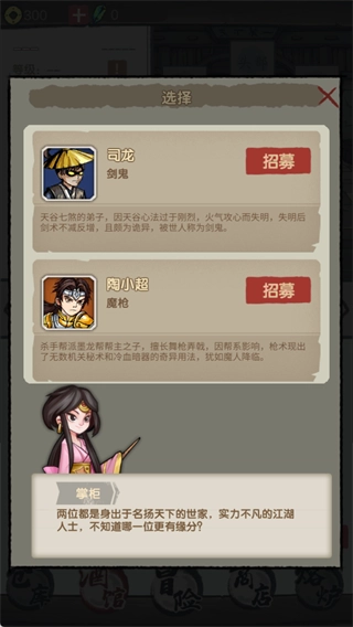 一、角色招募:结识名侠,共闯天涯