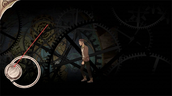 当场景背景为齿轮样式时,点击左侧的圆形交互按钮,即可推动当前剧情向前发展。