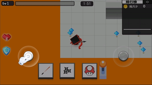 3、对局内会随机刷新道具,拾取“爱心”可以使角色生命值回满,“护盾”道具则可以抵挡敌方的3次攻击;