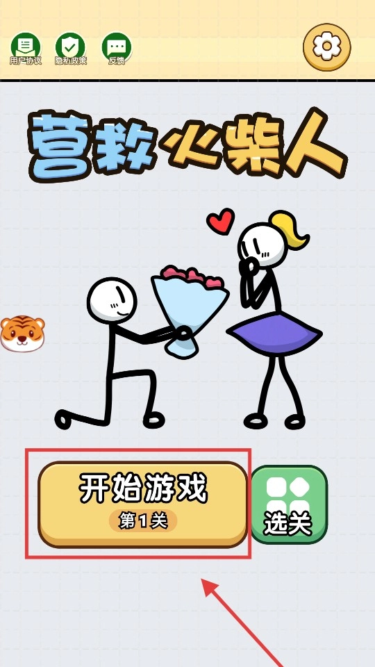 点击【开始游戏-第1关】按钮,进入第一关,开启营救火柴人的解谜闯关挑战。