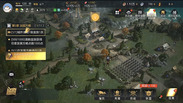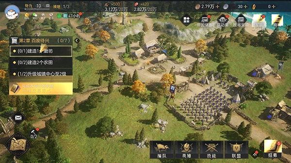 1、通过不断的囤积粮草和资源,不断地提升自己的军队战力,帮玩家征服这个游戏世界。