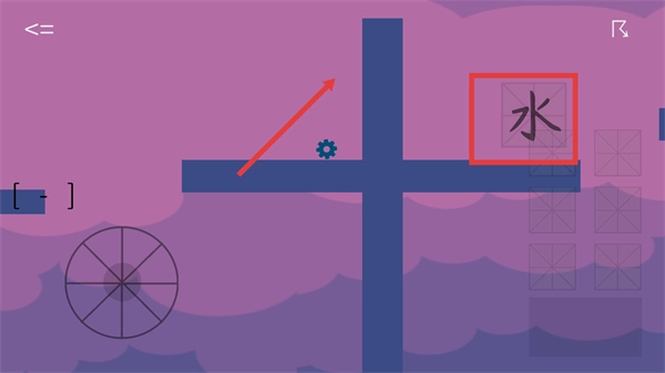 2、操控【齿轮】向右移动,靠近右侧标有【水】字的方块,以此为触发机关创造条件,从而推进游戏进度。
