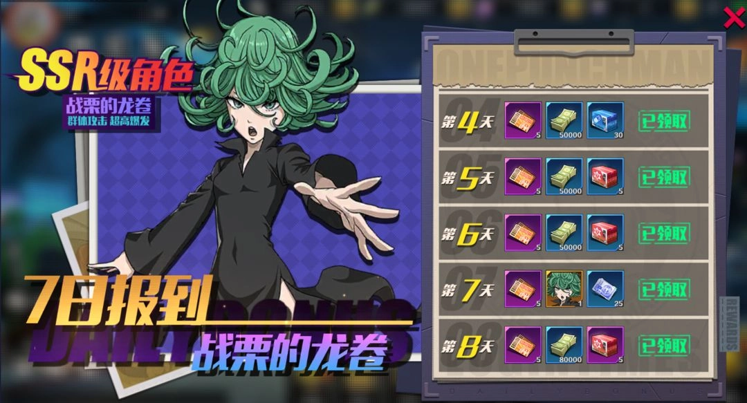 奖励:登陆满八天后,可领取SSR角色自选礼包。