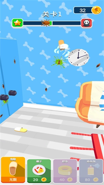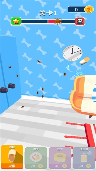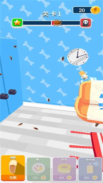 3、玩法简单易上手,只需灵活点击屏幕,武器就能精准锁定并攻击蟑螂,轻松通关毫无压力,整个过程简单又有趣。