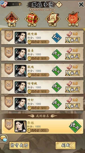 你可以从系统推荐的对手列表里挑选任意一位玩家作为挑战对象,每进行一轮挑战都需要消耗一张挑战券。