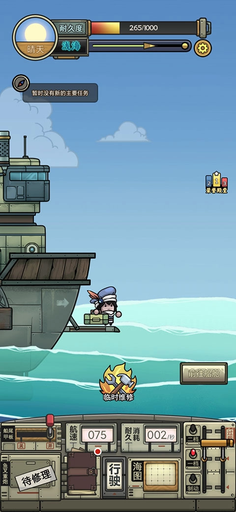 1、首先玩家得处于出海状态,再点击左下角的按钮,这样就能打开船尾甲板了。