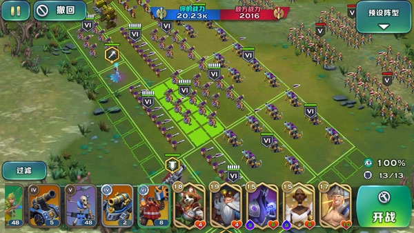 ②只有合理搭配不同射程的兵种,才能有效避免兵力堆积,更易于实现输出最大化。