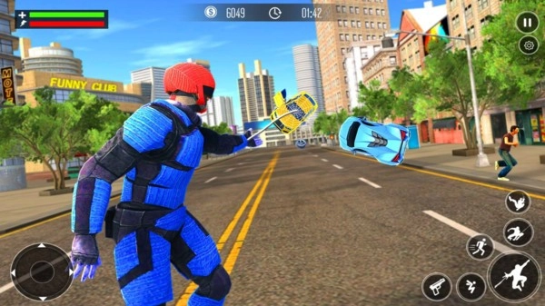 《超级警察城市英雄》是一款主打趣味动作元素的冒险游戏,玩家能在其中体验独特玩法与惊险挑战。依托高度写实的场景画面,你将沉浸于刺激精彩的游戏过程,感受自由探索的乐趣与紧张激烈的挑战环节。游戏中,你需要扮演超级警察,像蜘蛛侠般在城市高楼间飞檐走壁,同时操控角色打击各类犯罪团伙,守护城市的和平。游戏操作简单易上手,仅需几个按钮就能实现城市间的自由穿梭,更有丰富的动作格斗对决与炫酷刺激的技能特效。你还能通过挑战大量关卡BOSS展开激烈战斗,探索庞大的城市街道环境,在楼宇间飞行巡查,发现坏人时直接出手将其消灭。