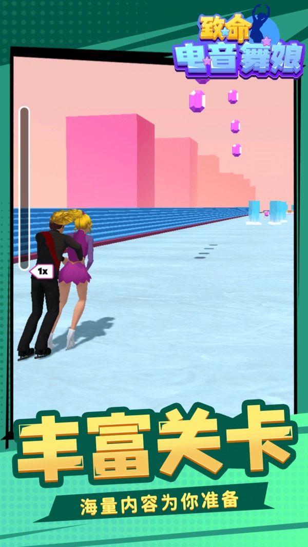 致命电音舞娘是一款动感十足的音乐动作游戏,玩家将在游戏里操控魅力十足的舞娘,挑战各类高难度舞蹈动作,在滑冰场上尽情展现华丽的滑冰技巧,不断跨越关卡中的重重障碍,最终抵达终点。