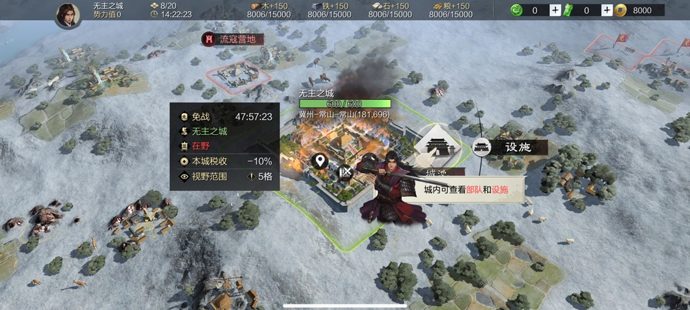 5、过完战役后,玩家将来到一个无主之城,点击设施;