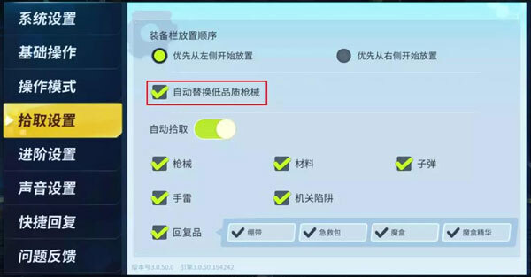 最后再提醒大家一点,枪械的性能等级是按颜色划分的,从低到高依次为白色<绿色<蓝色<紫色<橙色。大家可以在设置里调整“拾取设置”,把“自动替换低品质枪械”这个选项勾选上。这样一来,拾取枪械时就能省去一部分更换枪械的时间了。