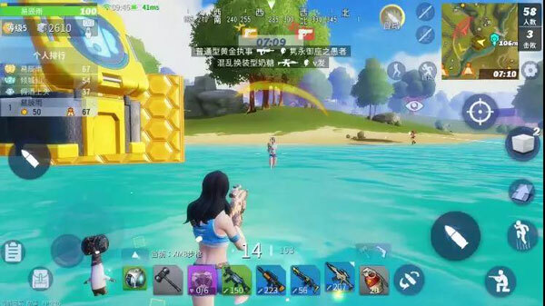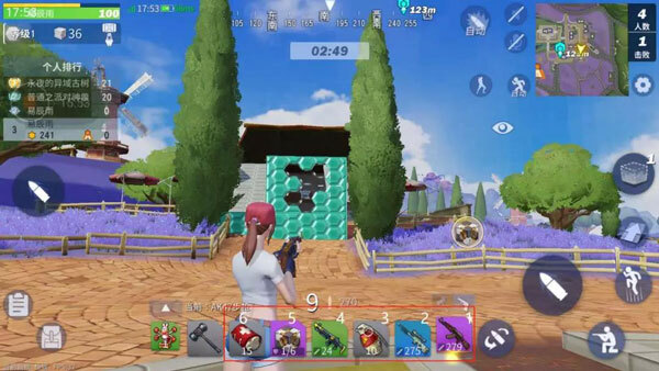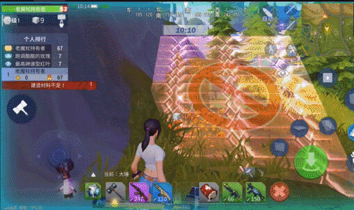 另外,像子弹、建造材料、冰块、滑板之类的部分道具不会直接显示在屏幕上,得点击背包按钮才能查看。而且背包的储存空间十分充裕,就算携带上千份建筑材料和子弹,也不会对角色的移动速度造成影响,足以充分满足各位探险家的“收集欲”!