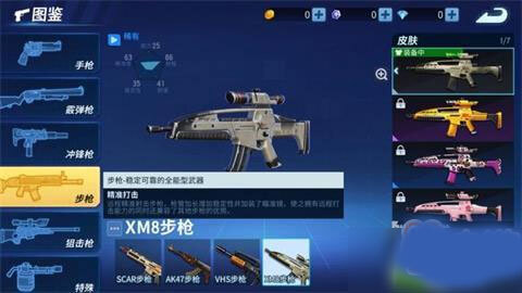 下面来说说XM8步枪。这把枪自带瞄准镜,在精度和射程上比同类型枪械更出色,射速与伤害也保持着步枪应有的水准,在不少场景里都能替代VSS狙击步枪完成任务。要是手头没有狙击枪,用一把XM8搭配另一把步枪,就能灵活应对各种战场情况了。