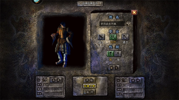 1、进入游戏从战士、法师、道士三大职业当中选择一个职业