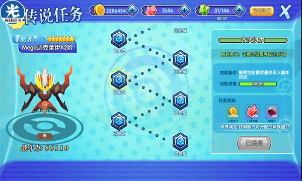 在做这个传说任务的20次副本时,可以一直重复打,直到完成任务就行!