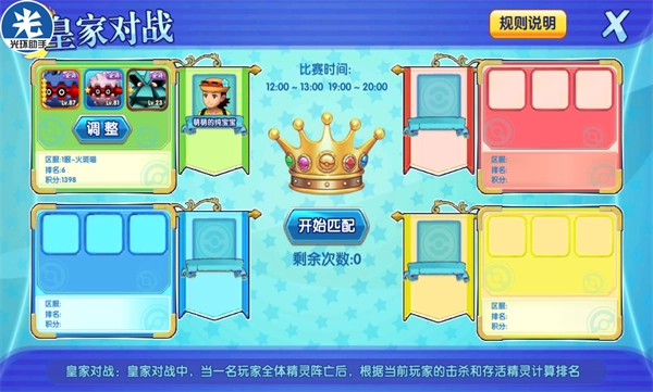 四人混战全面升级,全新血战模式震撼降临竞技场!无畏拼杀,唯有一位训练者能在这片残酷战场笑到最后!你是厌恶战场,还是选择屹立不倒?一切都由你最本真的勇气与智慧决定!带上你最强的精灵阵容,投身这场永不停歇的赛事狂欢!四人大混战的热血对决正式开启,期待你的强力加入!