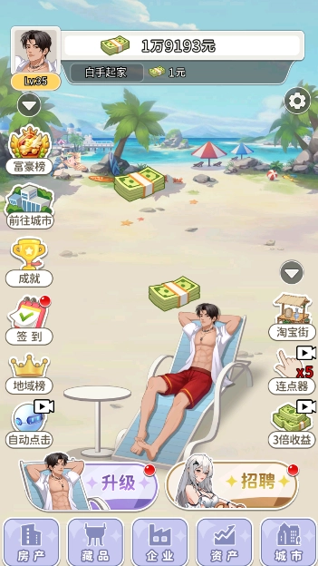 《躺平人生》是一款主打躺着就能赚钱的休闲模拟游戏,玩家在游戏里能体验躺平逆袭人生的乐趣。游戏操作简单易上手,让玩家能快速沉浸其中,感受经营店铺的趣味。不管是刚接触游戏的新手,还是经验丰富的资深玩家,都能轻松上手,迅速掌握游戏的核心玩法。只需点击屏幕就能赚钱,还可以招聘美女秘书来提升收益。