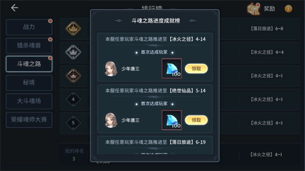 排行榜奖励 白嫖奖励2,和星斗祈愿湖不一样,得时常留意查看,只要有人达成新成就就能领取钻石。虽说相比星斗祈愿湖的奖励数量没那么多,但它没有门槛限制,慢慢积累下来,也是获取钻石的重要方式之一。