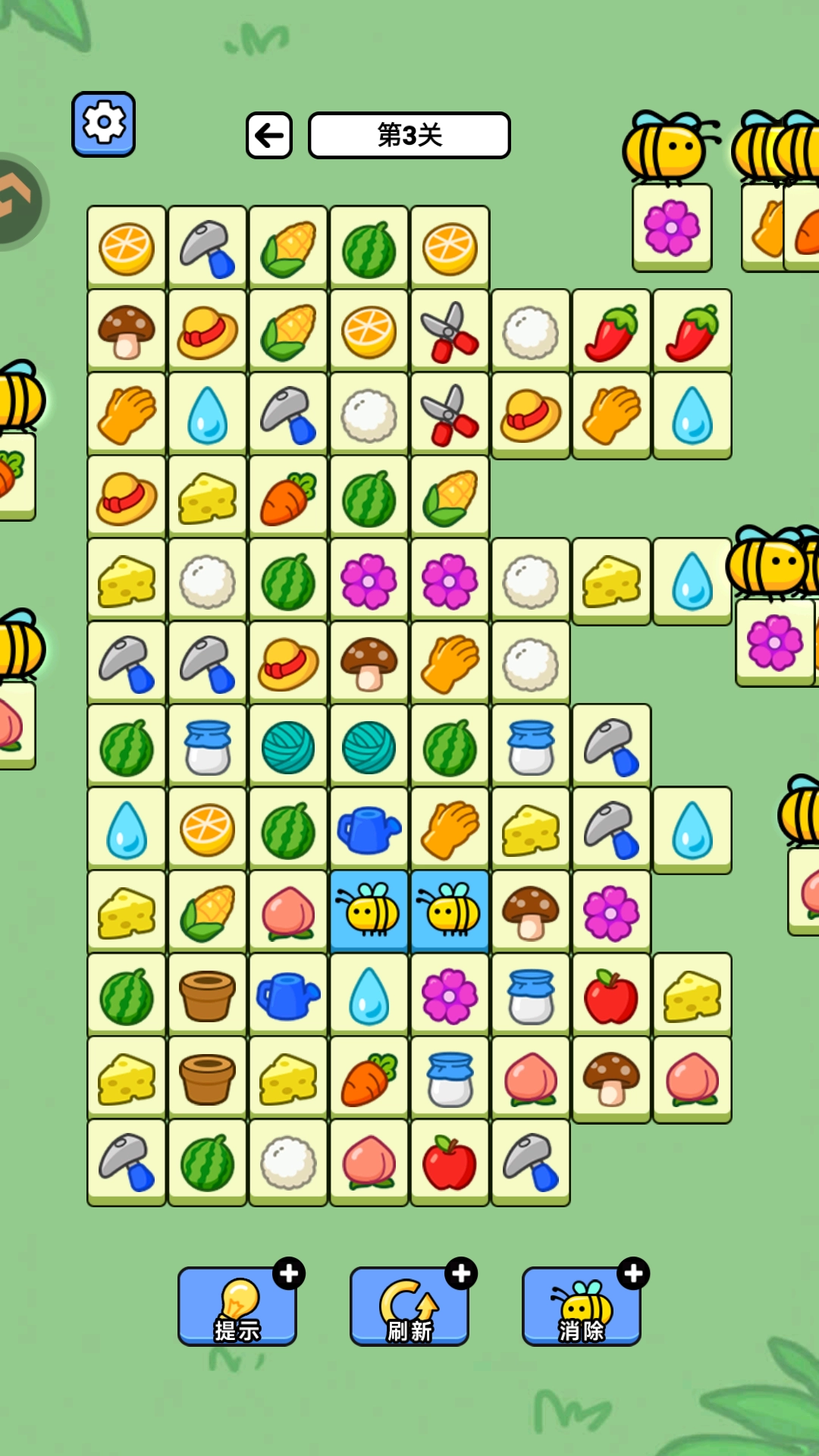 4、辅助道具系统:提示、刷新、蜜蜂等实用道具,降低卡关挫败感,增强通关成就感。