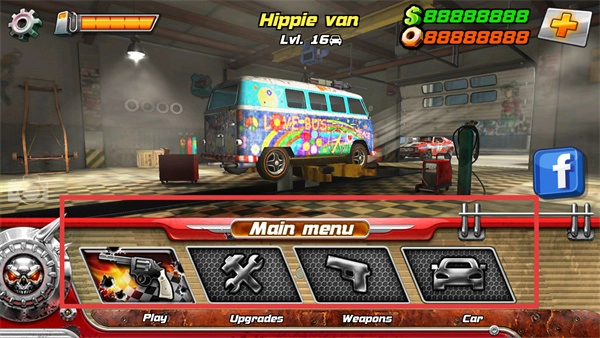 1、在页面可以选择车辆升级,武器库和选择车辆;