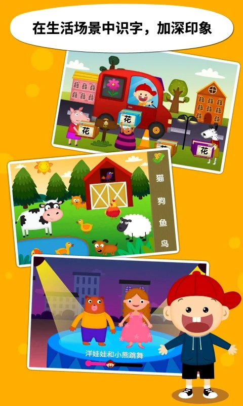 阳阳儿童识字软件是专门为中国儿童设计的少儿识字启蒙互动工具,借助游戏化的体验过程,让孩子在轻松愉悦的氛围中自然而然地认识和掌握汉字。我们通过上百种多样的互动形式,把汉字转化为富有生命力和内涵的词组、句子,帮助孩子轻松开启识字启蒙之旅。在细节设计上,我们注重在潜移默化中培养孩子的目标意识、自信心、专注力以及解决问题的能力,引导小朋友以乐观自信的态度去探索世界。