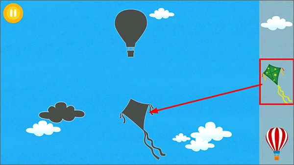5、接着进入下一个学习模块,主题是“天空中存在哪些事物”,用户需将右侧的云彩、风筝等元素拖拽至天空区域内。