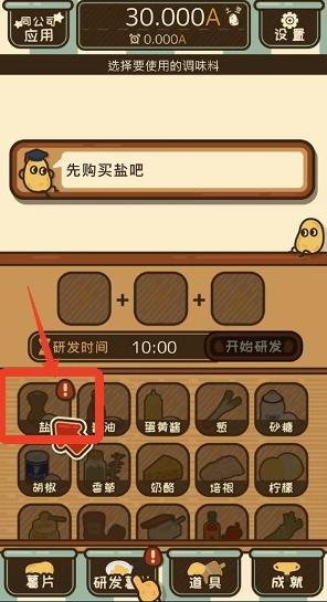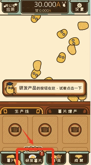 3、除了制作薯片外,还需要研发新薯片,点击“研发”按钮即可研发出不同口味的新薯片。
